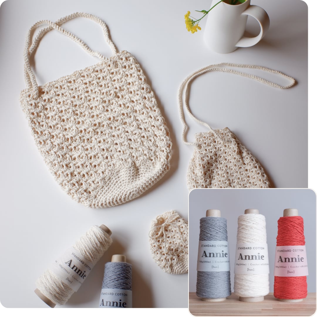 今回は「yumiさん」と一緒に、Annieで編むデイリーバッグ&ポシェット&巾着を作りました!