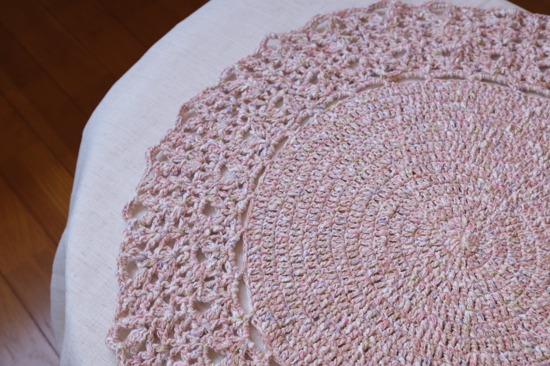 お花畑のような淡くやさしいカラーと、スラブ調のふんわりとした質感が魅力。