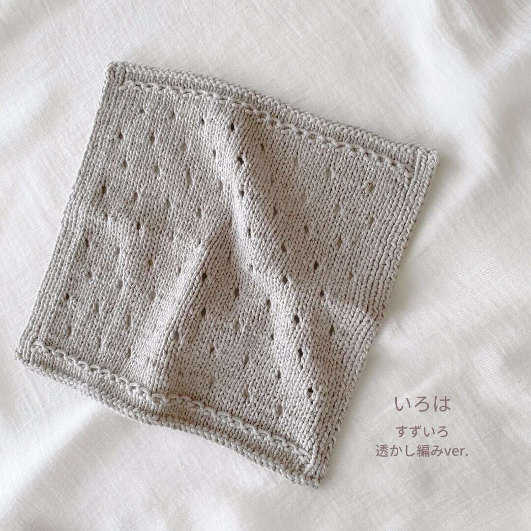 ※いろは1玉で「かのこ縁編みVer.」または「透かし編みVer.」のどちらか1枚が編めます。