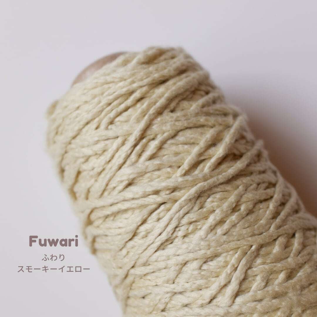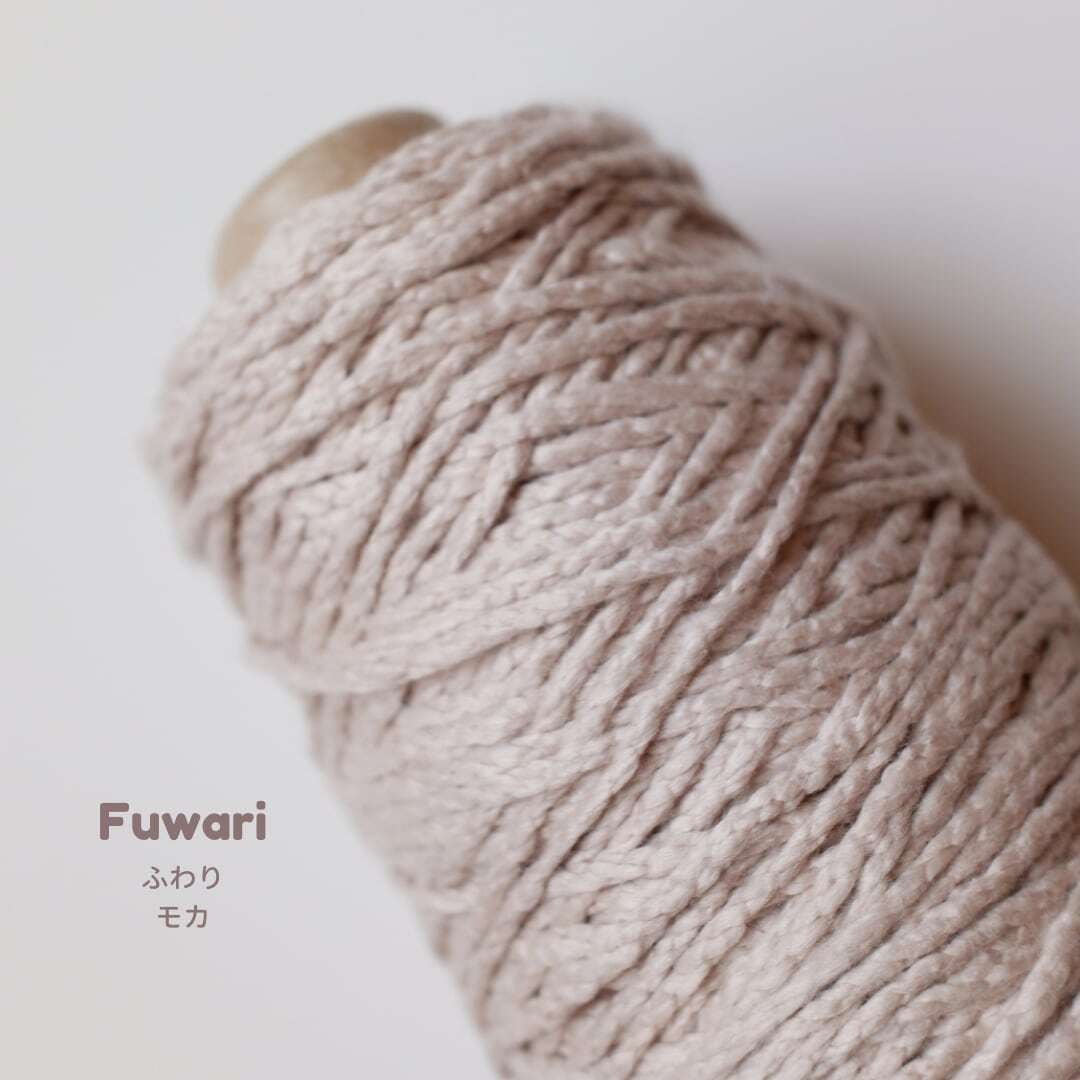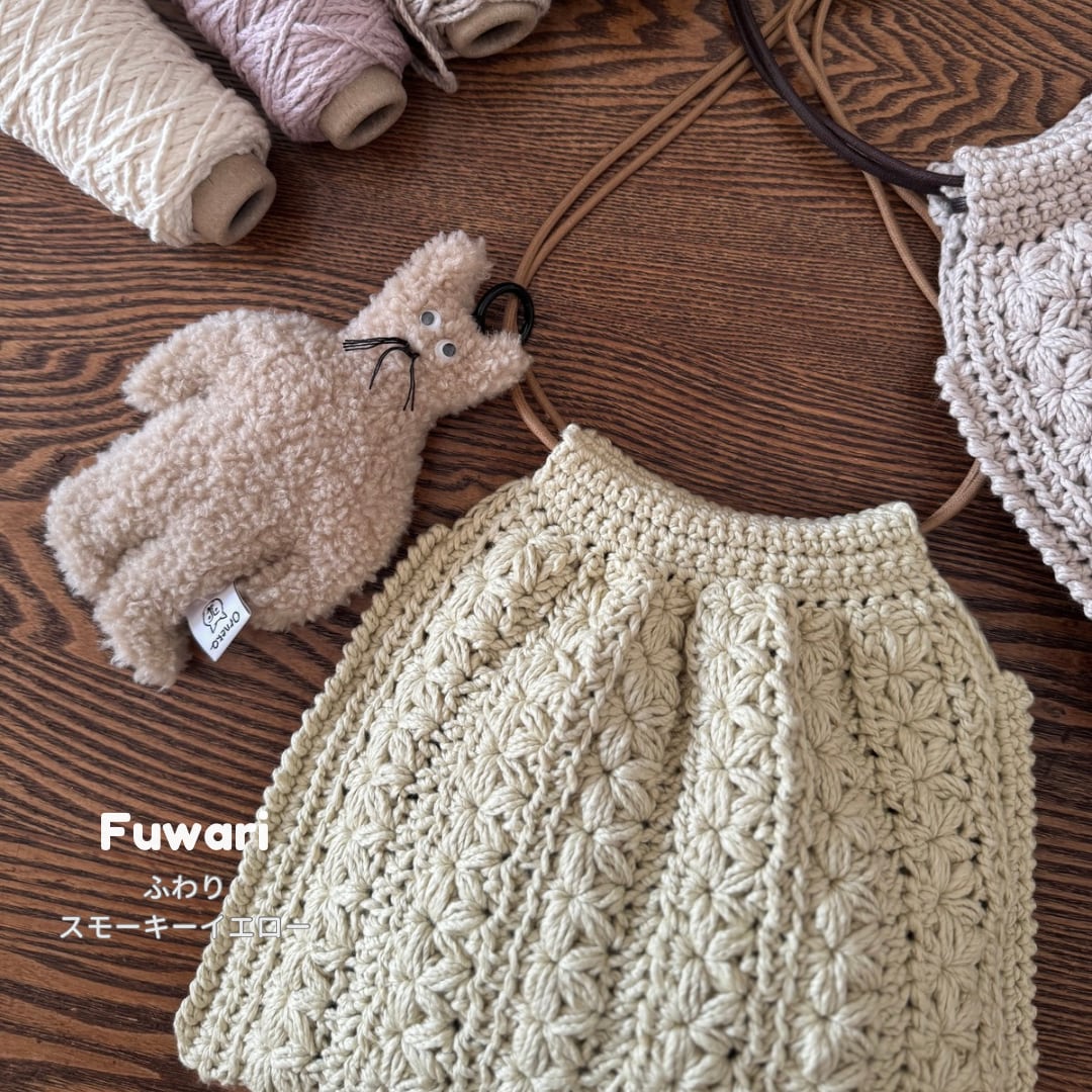 uzu.さんの大人気作品を、カシミヤのようなやさしい肌ざわりの糸「ふわり」で編んでみました。