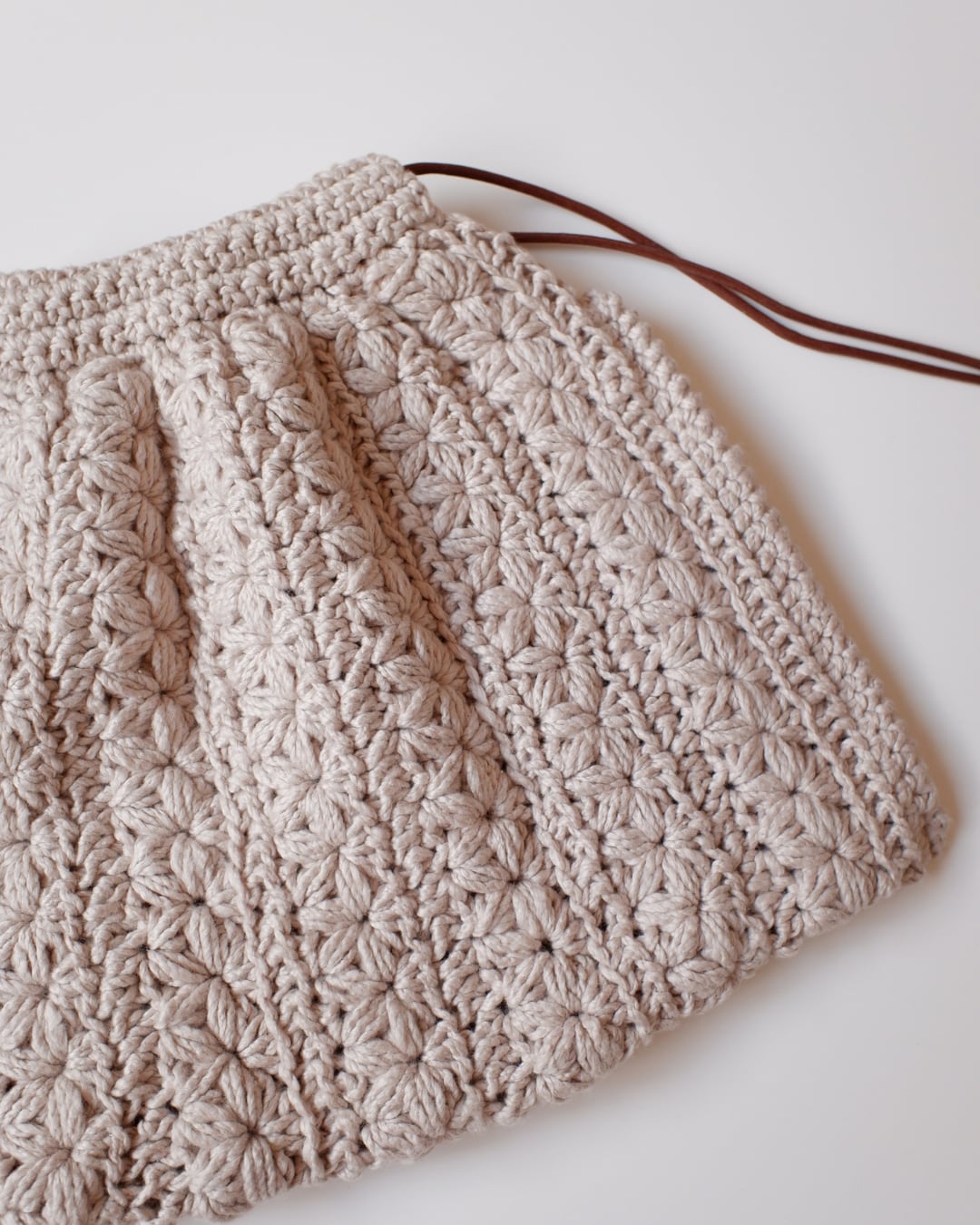 ジャスミンステッチ(リフ編み)を縦に配置し、ふっくらとしたラインを強調したクロッシェ