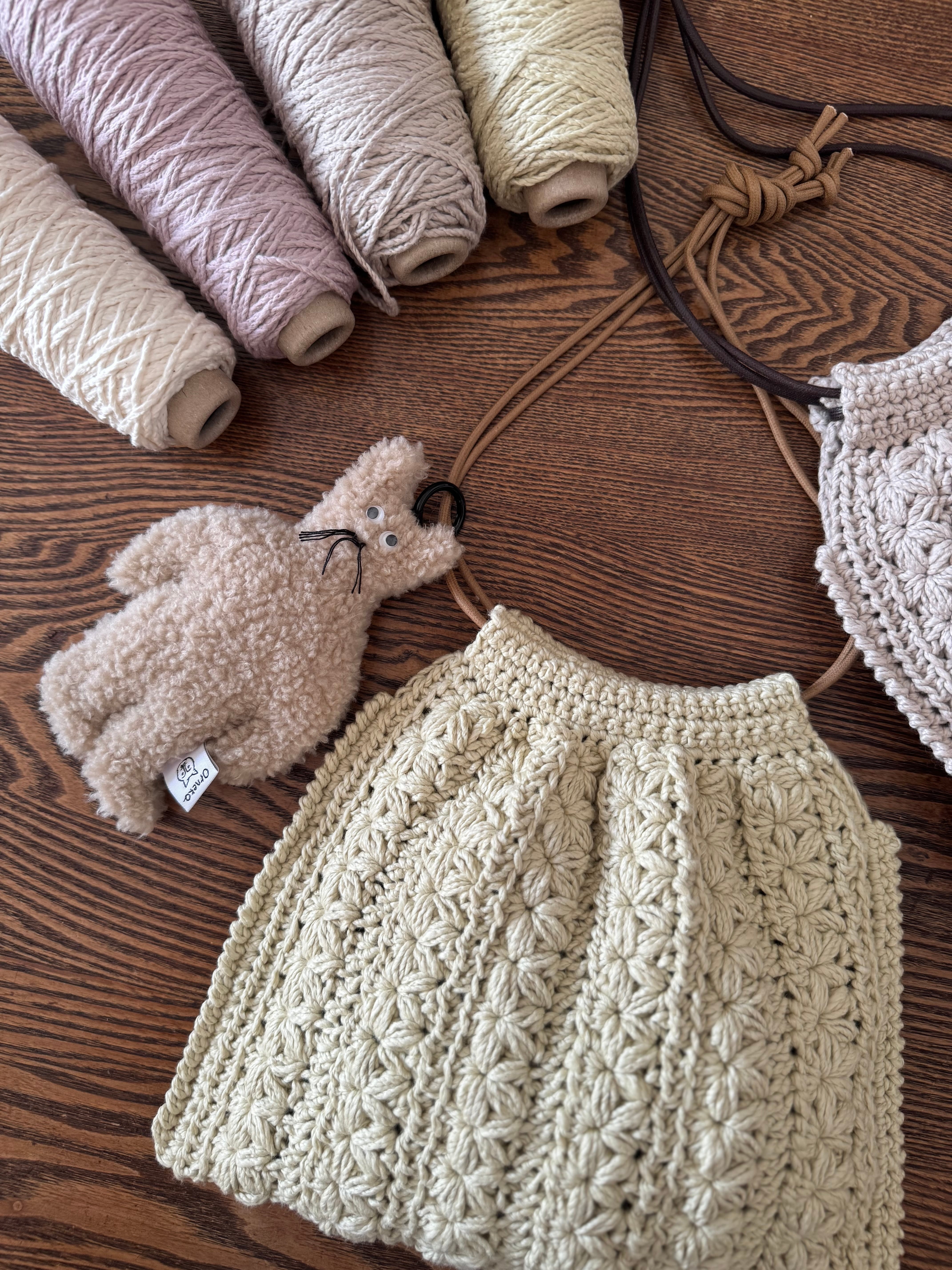 お家時間が楽しくなるような編み物小物を中心に作っています。