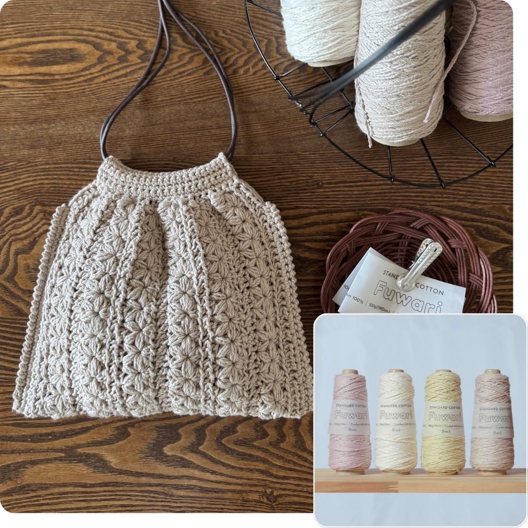 今回は「uzu. さん」と一緒に、ふわりで編むリフ編みのクロッシェバッグを作りました。