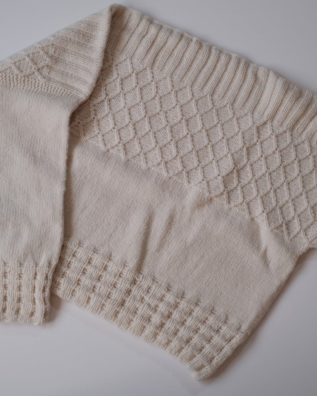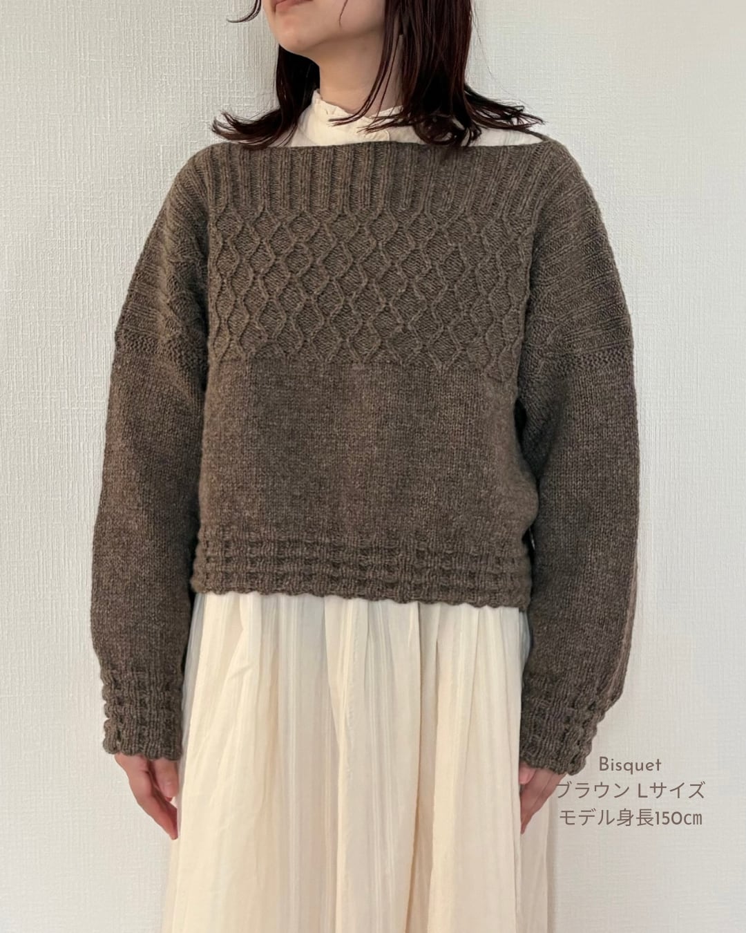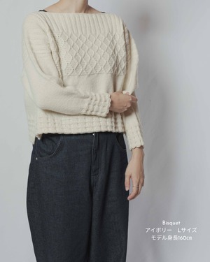 崩れもしにくくこのセーターの特徴のひとつ。 ボトムアップで編むクロップ丈のOldiesセ