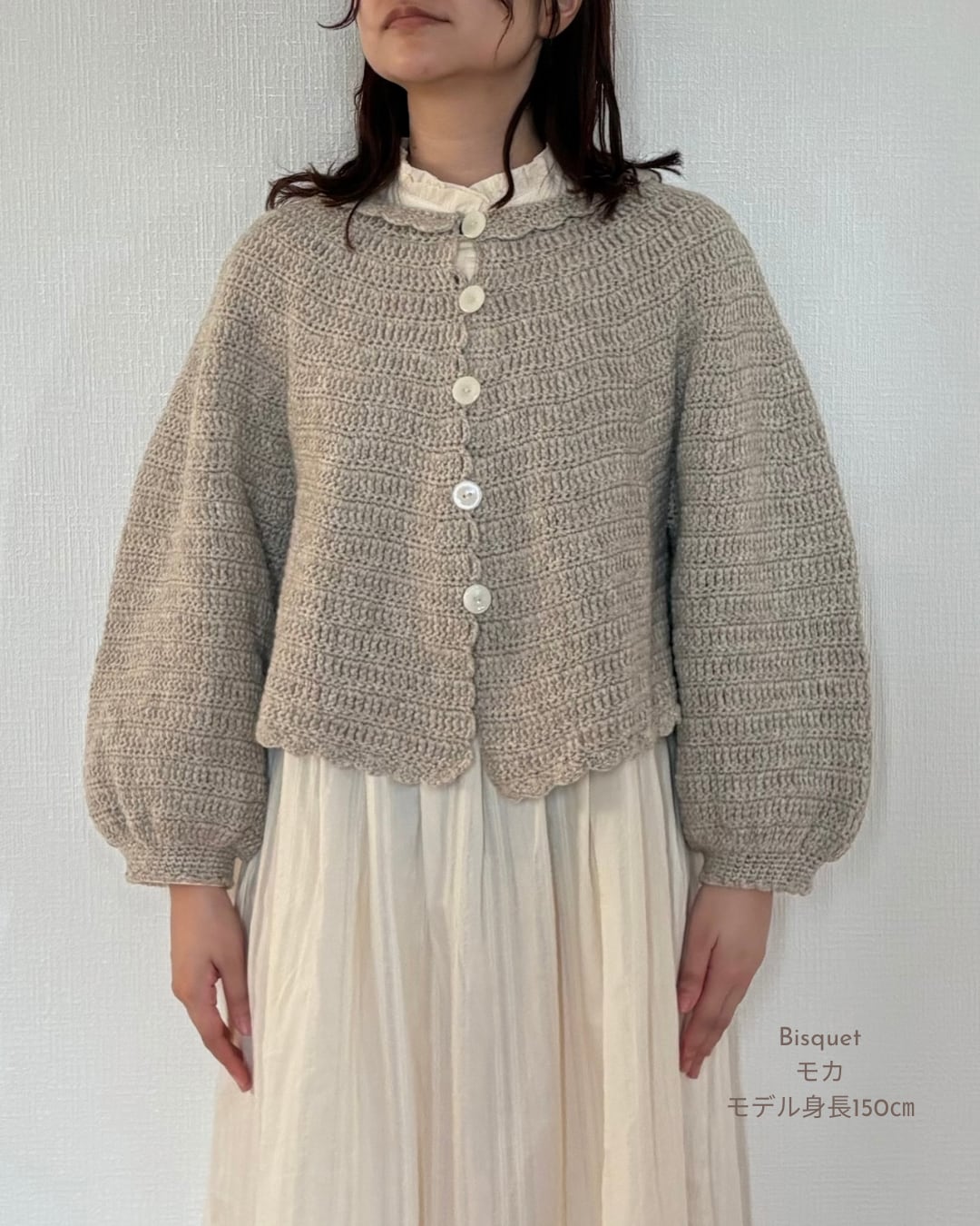 今回は「uzu. さん」と一緒に、ビスケで編むスカラップリムカーディガンを作りました。