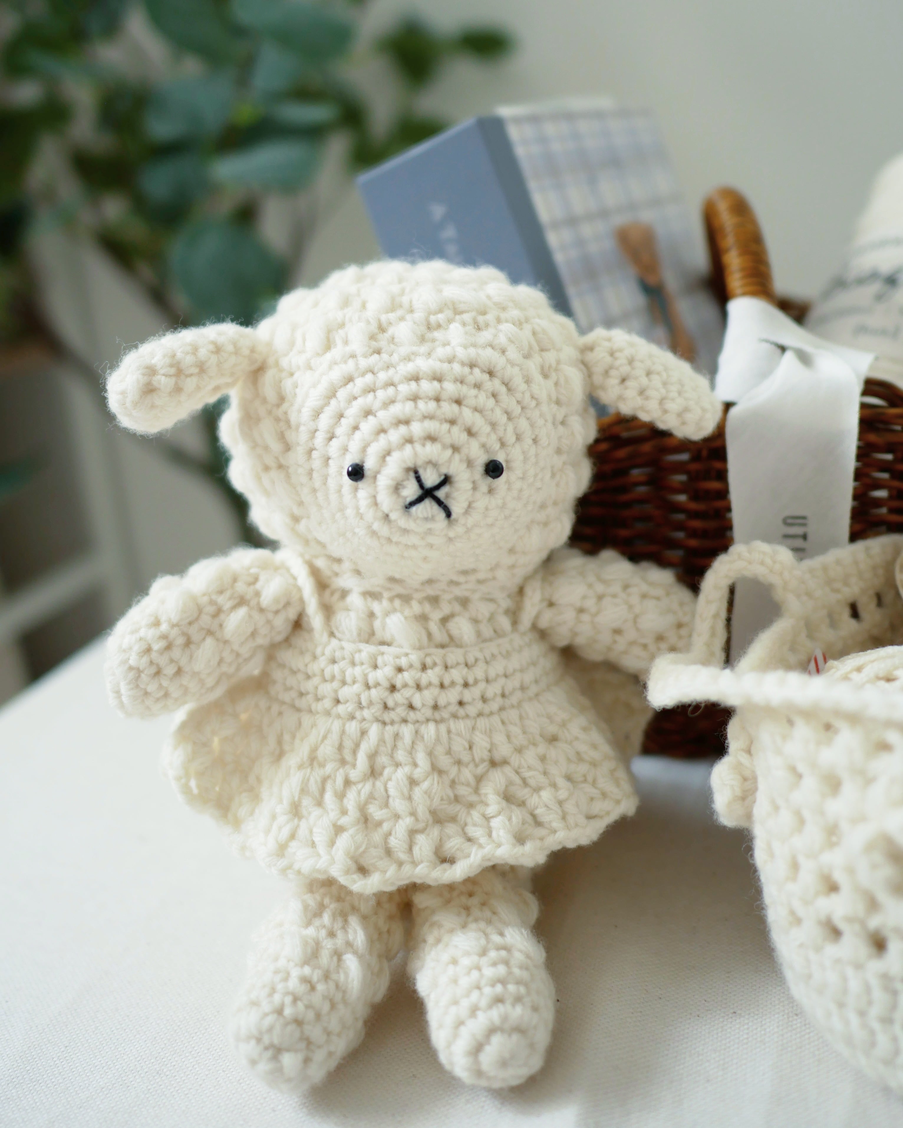 あまり糸で編める、ビスチェとバスケットの編み図もセットになっているので、そのまま飾ったり遊んだりできるのが嬉しいポイント◎
