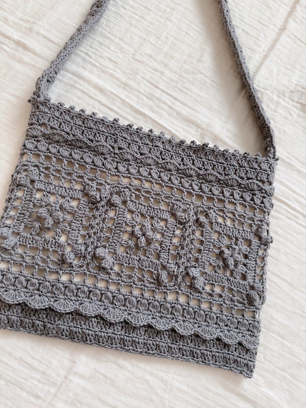 ショートケーキのような模様編みが可愛らしいショルダーバッグ。