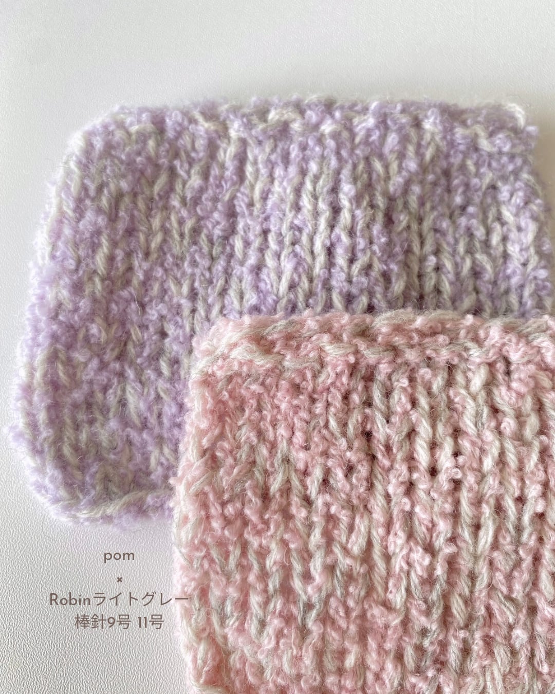 紡毛糸のため、仕上がり後に縮絨することで、ぎゅっと目が詰まって編み地が整います。