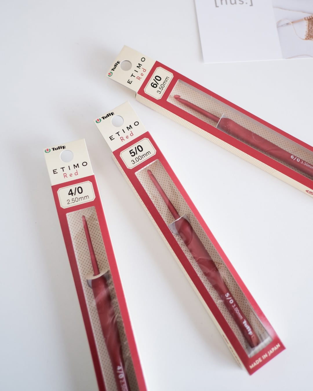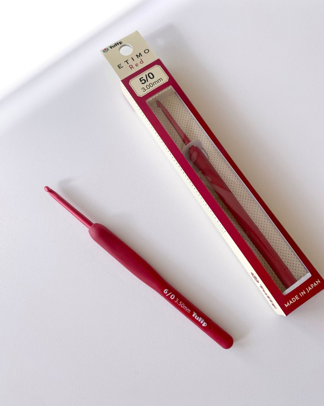 世界中で愛用されているエティモシリーズからレッドが新登場 なめらかな編み心地でクッショングリップ付きだから手に優しく疲れにくい! 針先のマット調の赤色は、明かりの下でも反射せず目にも優しい仕様です。 ■パッケージサイズ: 28mm×184mm×12mm