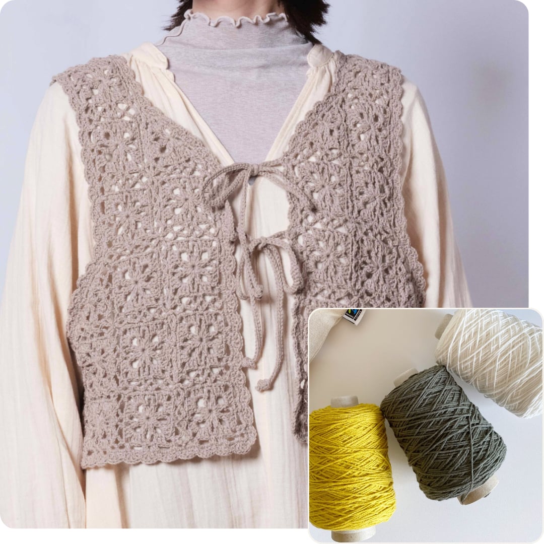 軽くて手触り抜群の、ウェアにぴったりなコットン糸「スフレ」で編むベスト。