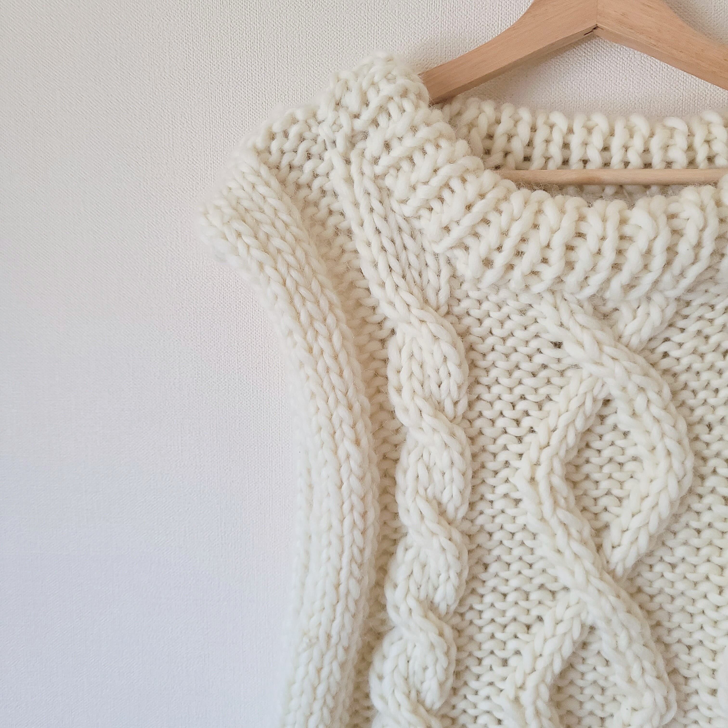 ※別途、棒針 12mm(ジャンボ針)、かぎ針10㎜、なわ編み針、とじ針が必要です。
