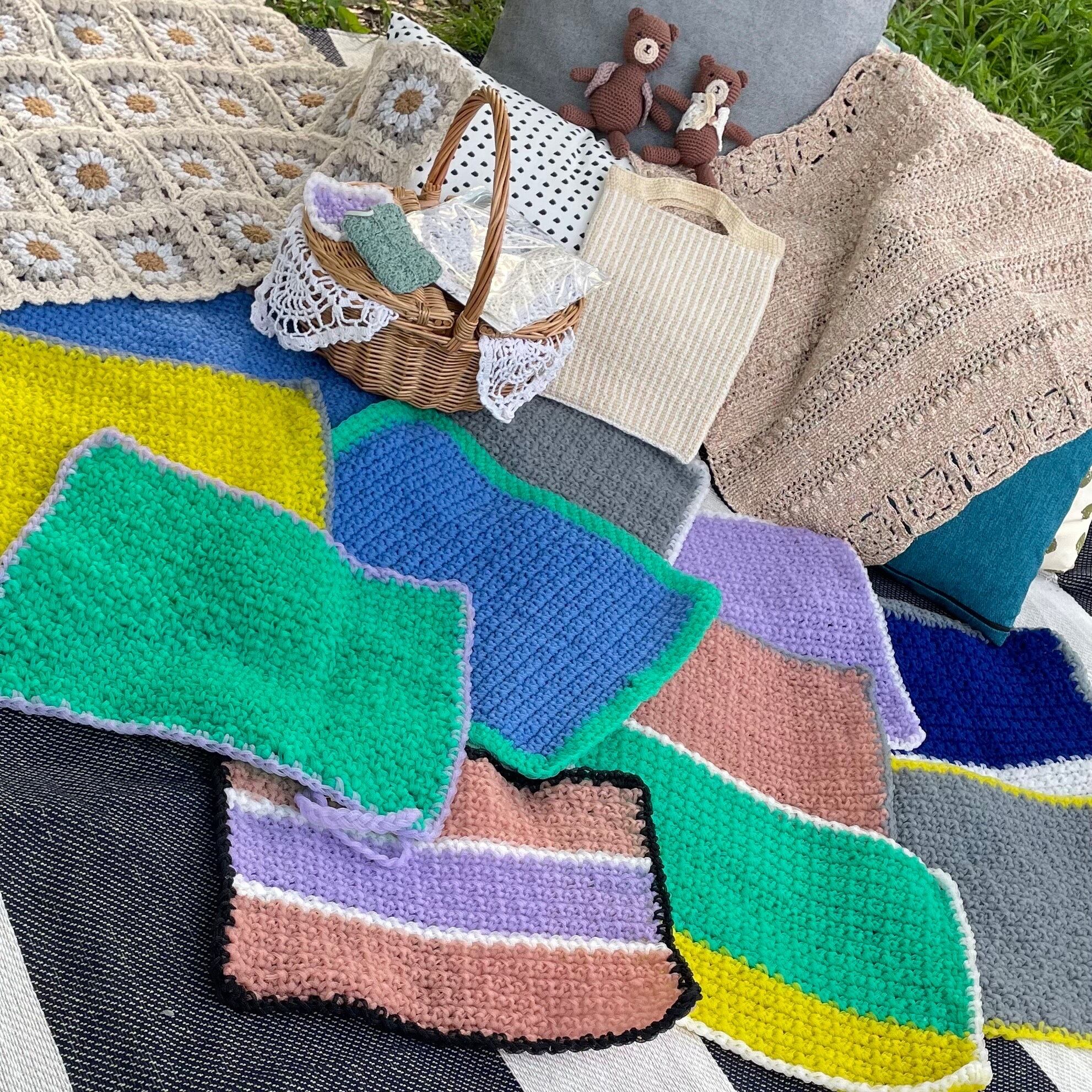 編み上がりは伸びにくいのでバッグやポーチなどの袋小物を編むのにちょうど良い素材。