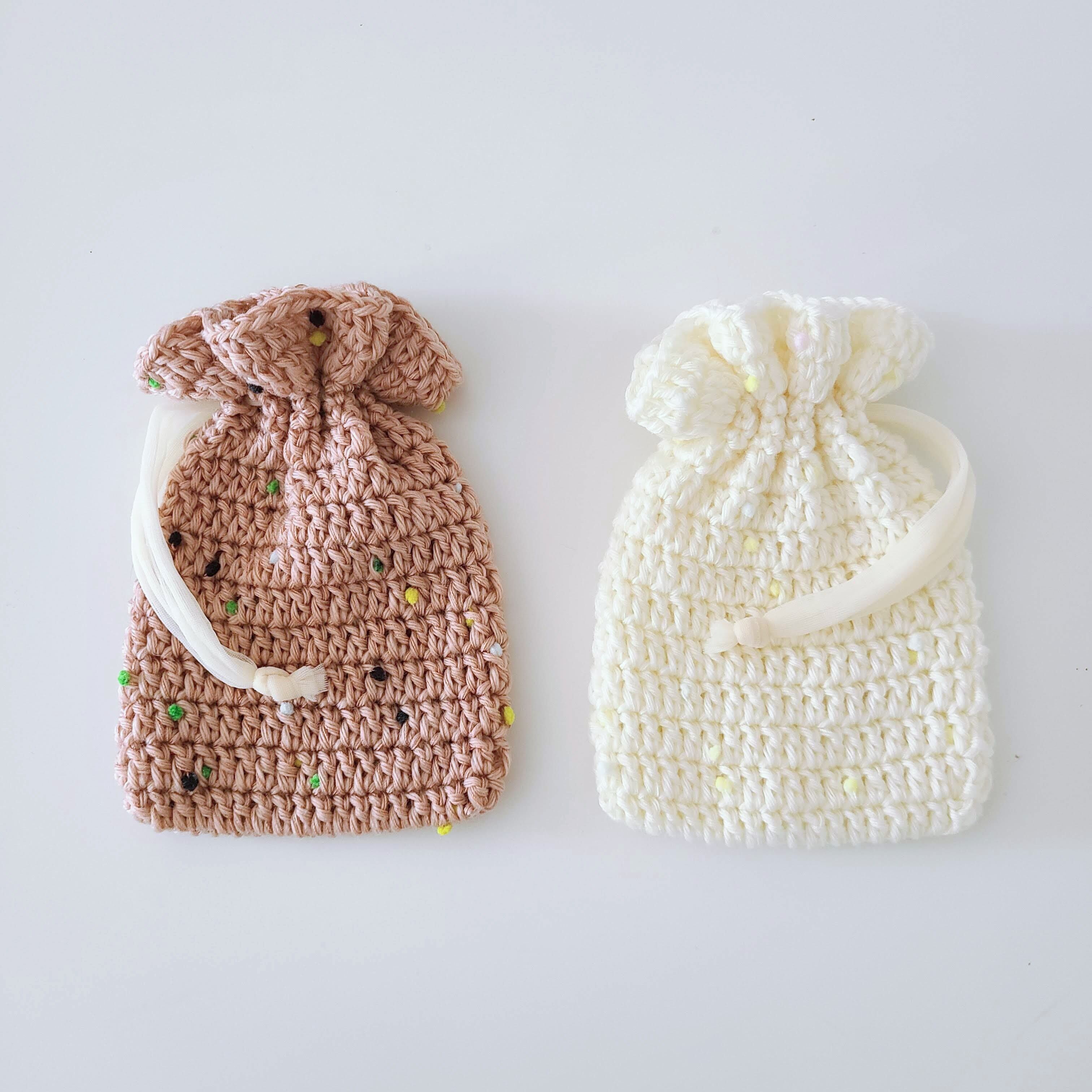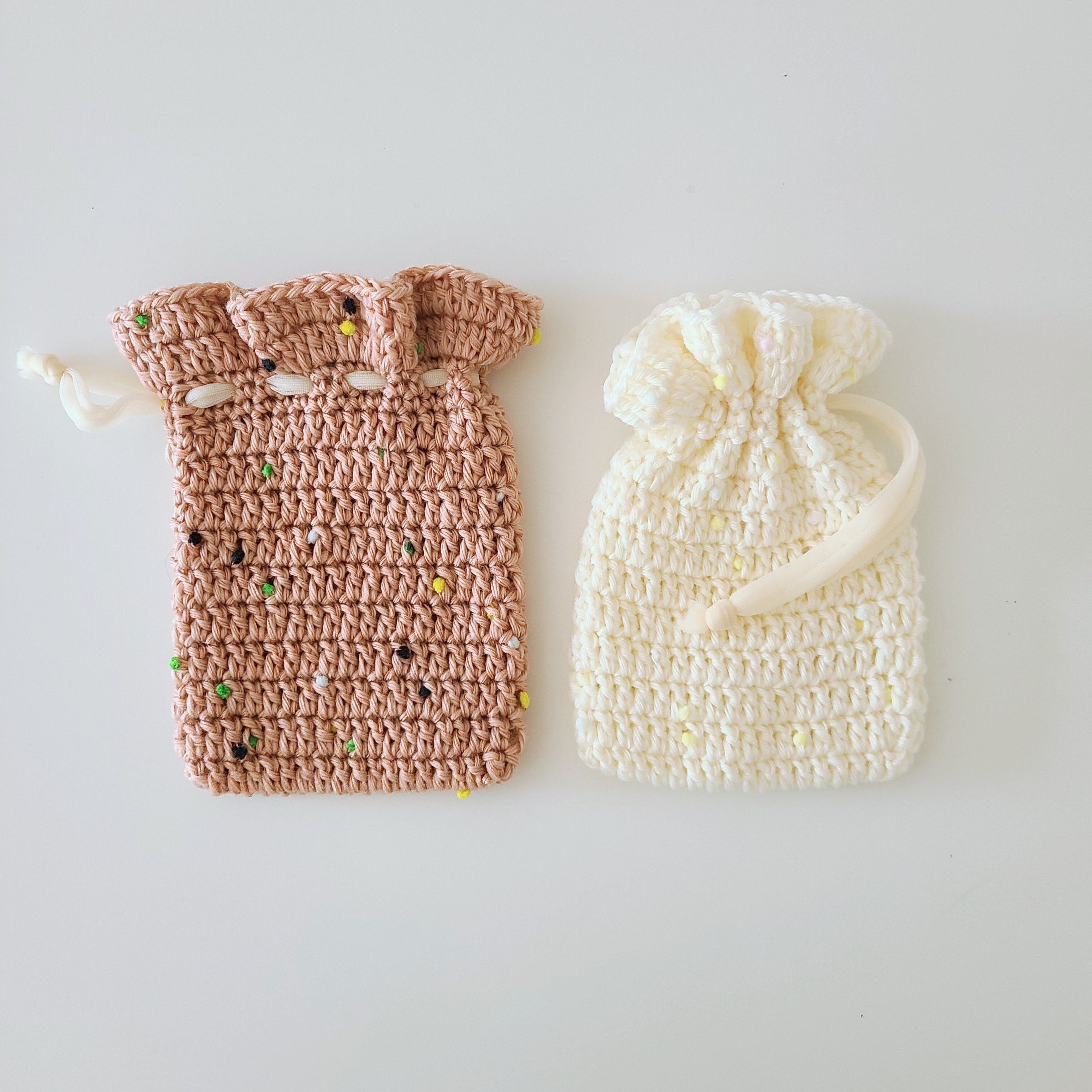 【かぎ針付き編みものキット】やわらかラムseedの巾着
