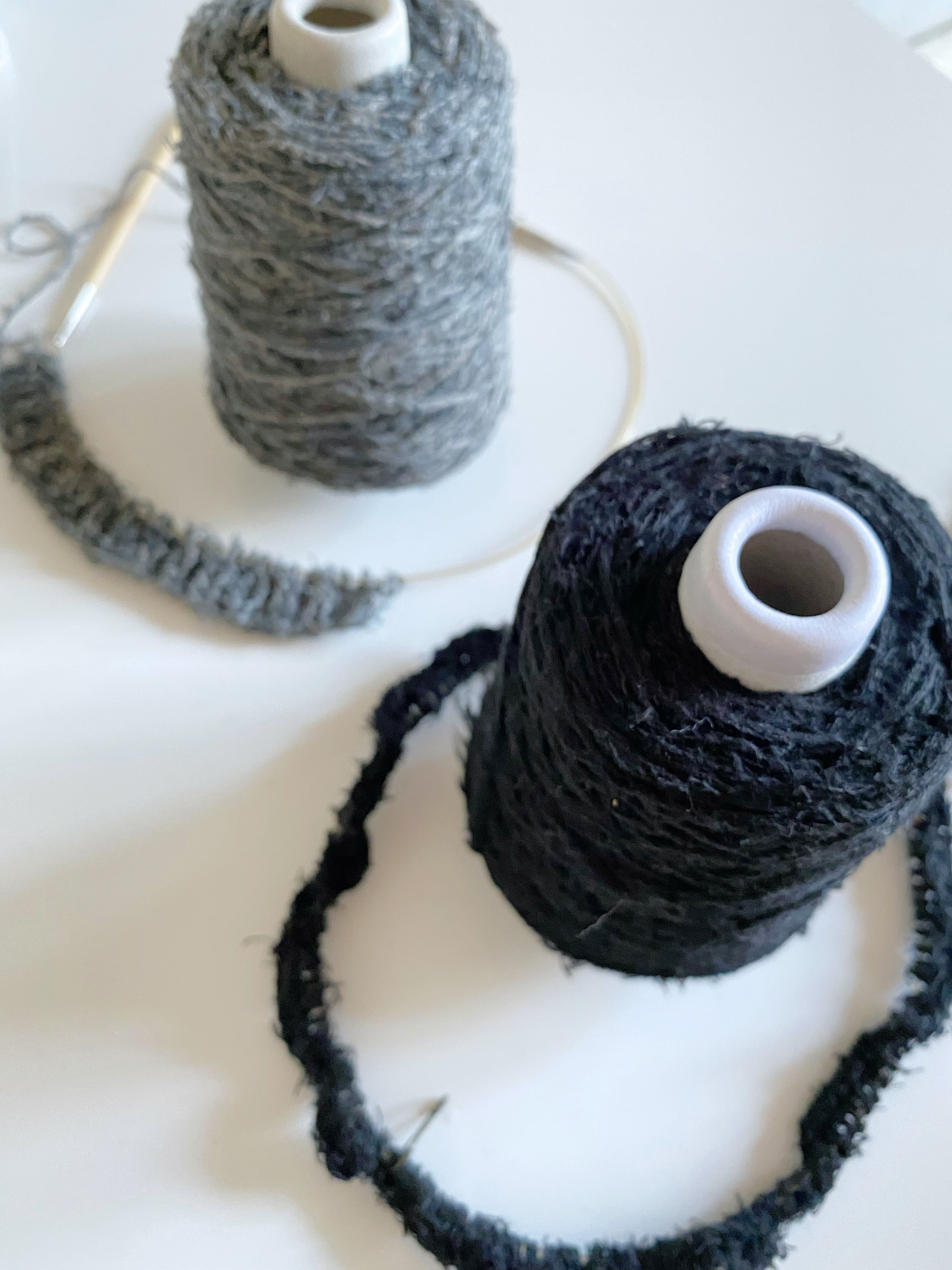 ※糸の特性上かぎ針編みは少し編み地が見にくい場合があります。少し太めの針でざっくり編むと見やすく、糸の特性も活かした編み地に仕上がるのでおすすめです。