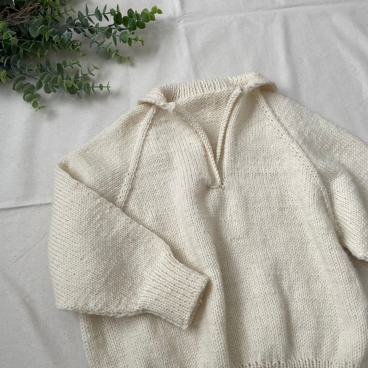 編み方はトップダウンで編むセーターなので、とじはぎがなく初心者の方でも編みやすくなってます。編み方動画もあるので分からない所は動画を参考に編んでみて下さいね。