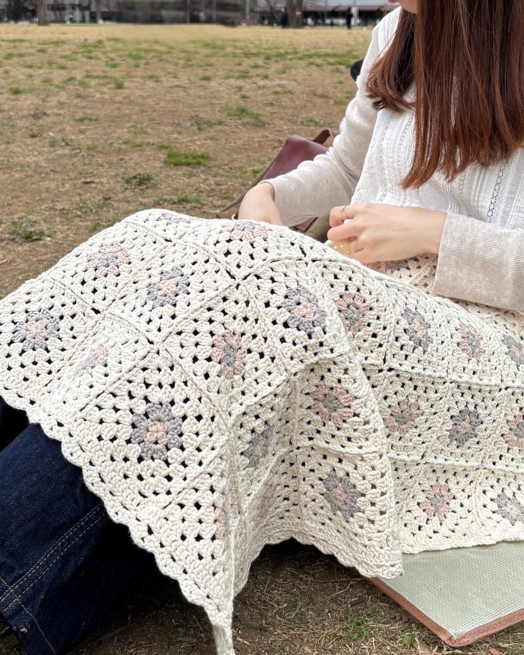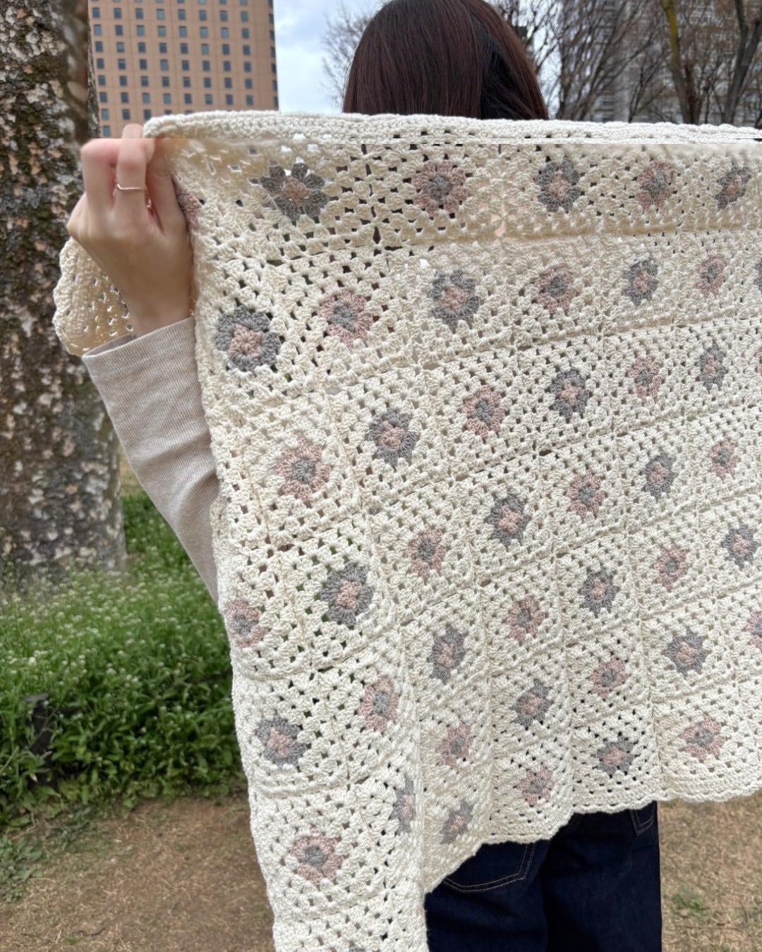 [hus:]オリジナルの糸「いろは」で編む、春らしさ満開のブランケット。