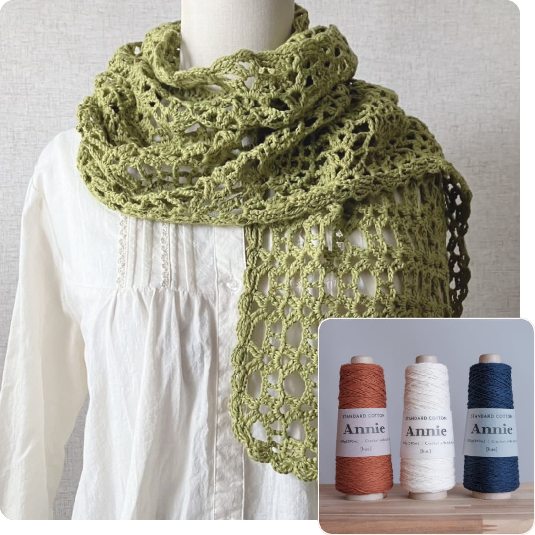今回はATELIER matiさんと一緒に、パイナップル模様のレーシーストールをつくりました。