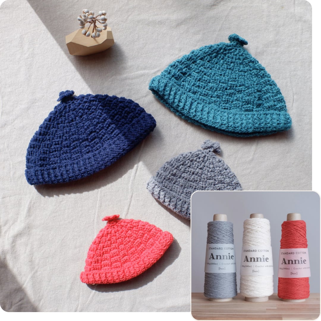 使用糸「アニー」はカラーバリエーション豊富なので、きょうだいや親子で色違いにして楽しむのもおすすめです♩️